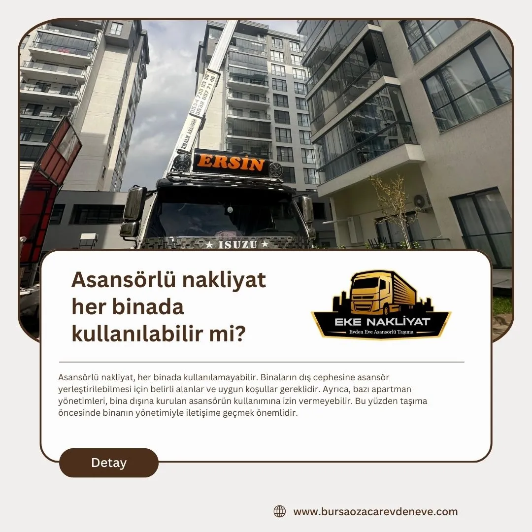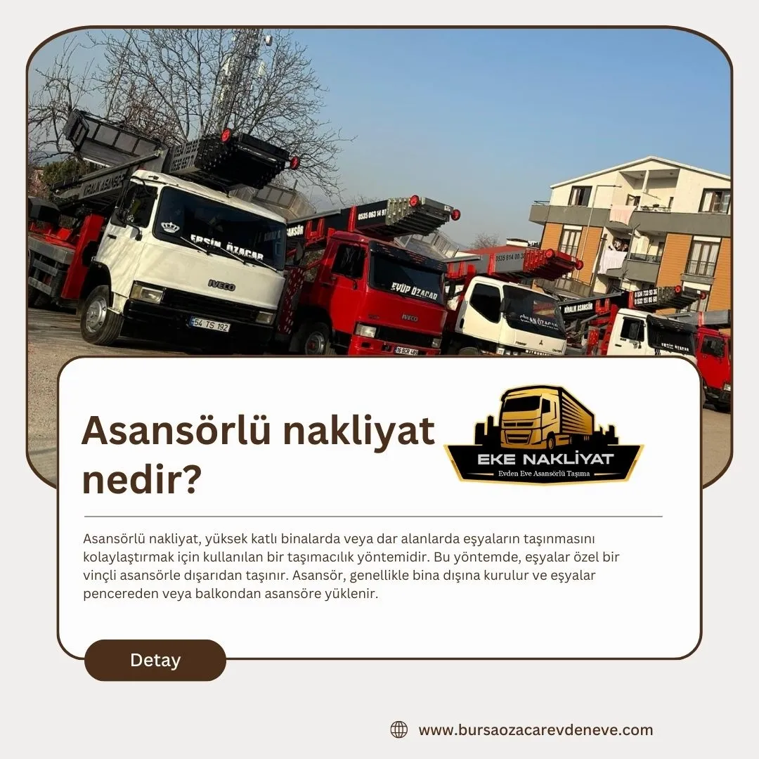 Devamını OkuAsansörlü nakliyat, eşyaların taşınmasında asansörlü sistemlerin kullanıldığı bir hizmettir.